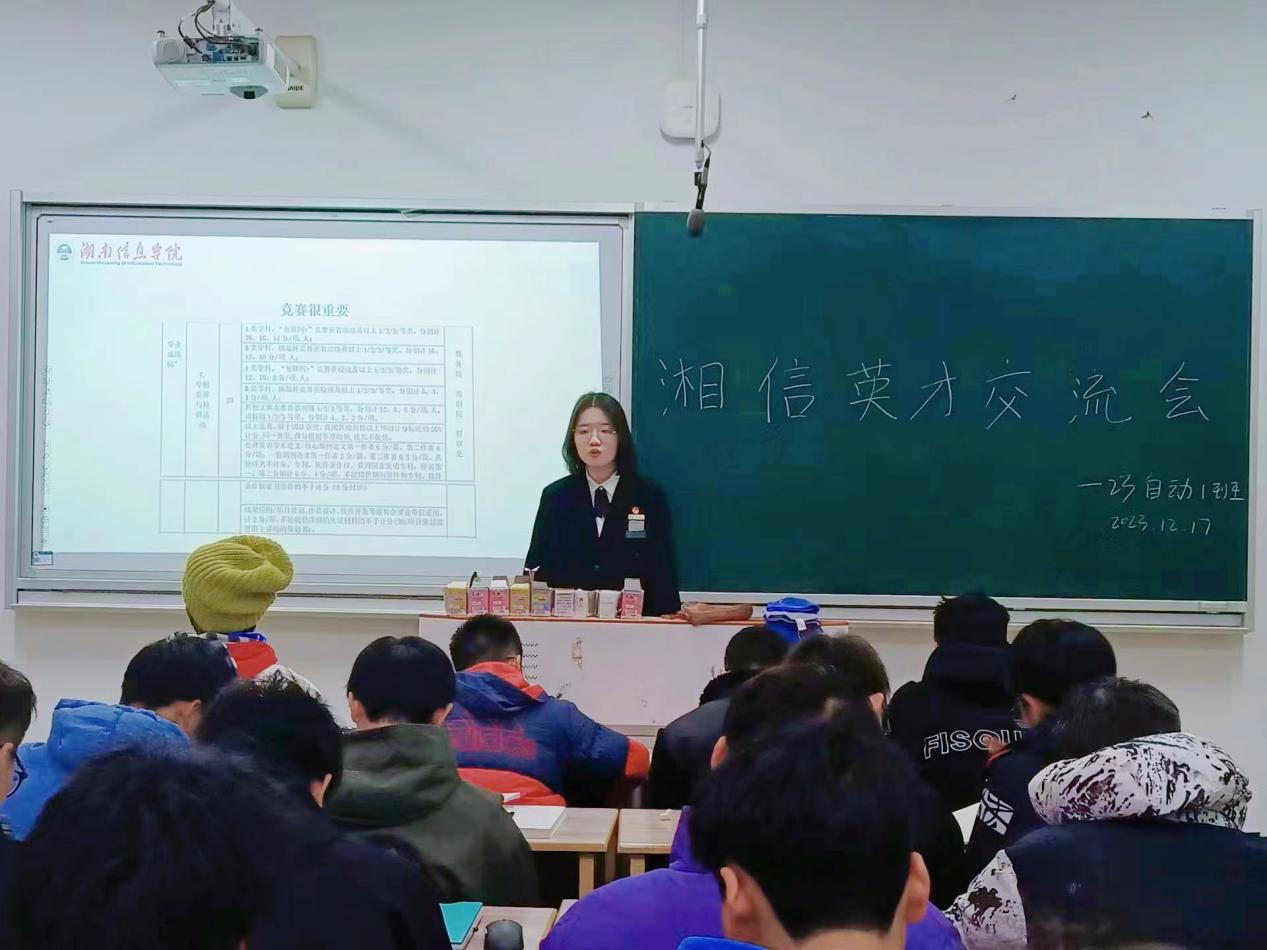 国家奖学金、湘信英才奖学金一等奖获得者钟卓婷,国家奖学金获得者车承志等其他奖学金获得者结合自身经历,分享了自己的成长故事、学习方法。钟卓婷同学表示作为大学生,需要在提升理论水平的基础上不断拓展自身技能,投身实践,彰显青春风采。车承志同学勉励在座的同学们要保持对知识的渴望,不惧困难,坚定前行,相信自己能够创造更加灿烂的未来。