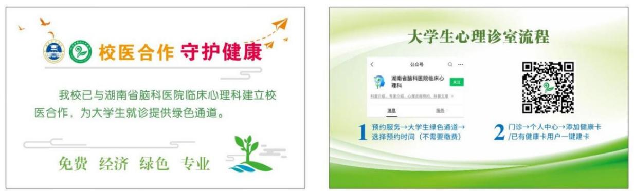 我校已与湖南省脑科医院临床心理科建立校医合作,为大学生就诊提供绿色通道