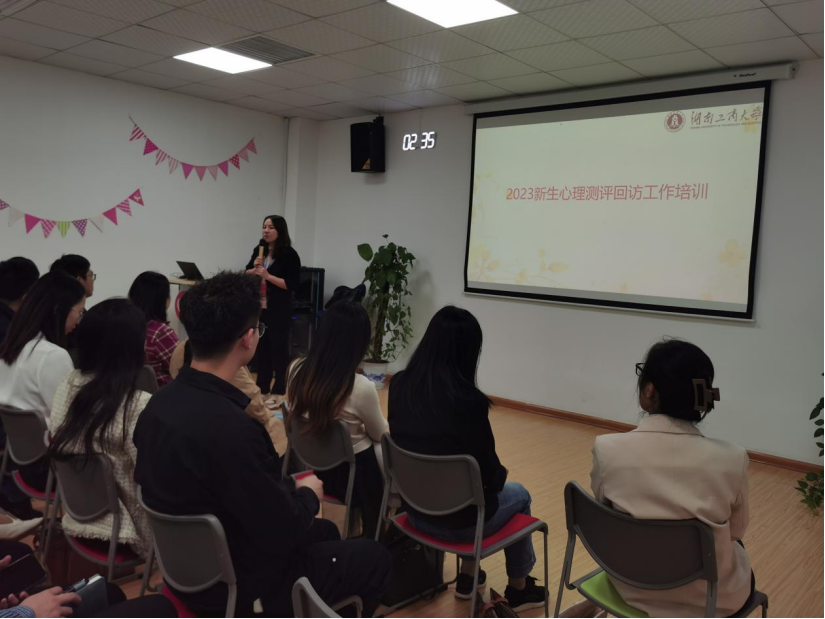 2023年10月20日下午,湖南工商大学心育中心进行了2023级大一新生回访工作培训与安排。此次培训还邀请了湖南人文科技学院、湖南信息学院、湖南电子科技职业学院心育中心专职咨询师参加。