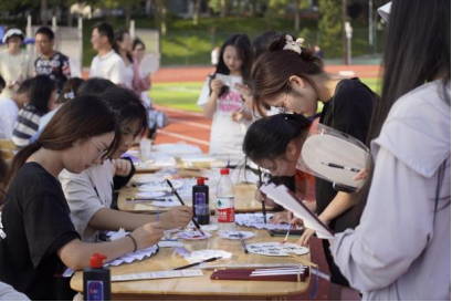 二是“搜罗小善”,即用书画的形式,恣意挥洒心情,用形状和色彩表达对生活的态度。同学们纷纷选取喜欢的扇子,画上表达心声的图案,活动中的扇子绘画作品深受学生喜爱,此活动热闹非凡。