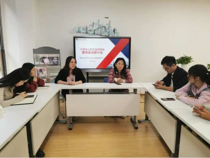 2023年10月20日下午,湖南信息学院、湖南人文科技学院和湖南电子科技职业学院来到湖南工商大学南校区心理中心进行了四校示范中心案例会诊研讨会。