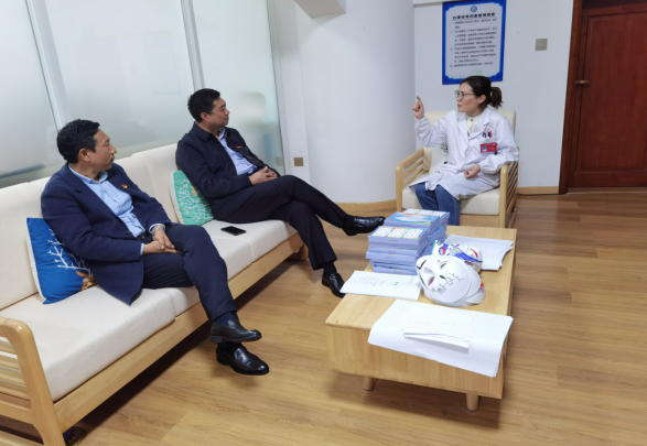 我校领导高度重视学生心理健康,活动开始前,学校副校长黄涛和学工部部长黎善江就当前学生心理问题与周医生进行交流。