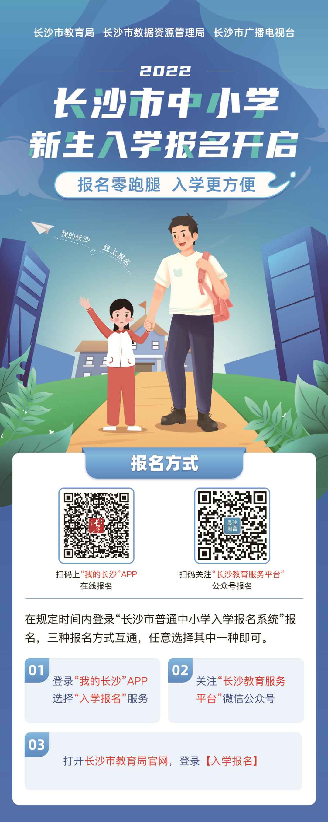 为有序推进我市招生入学工作,“长沙市普通中小学入学报名系统”网上报名将于4月11日-25日开放。