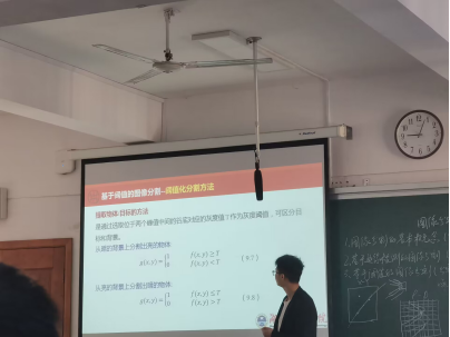 《数字图像处理》这门课程主要介绍计算机对图像进行去除噪声、增强、复原、分割、提取特征等处理的方法和技术等,很多老师把此门课比作“天书”。2023年10月23日,通信工程系李更祥老师就“图像分割”这章节在致用楼305给学院老师展示如何将“天书”深入浅出地讲授给学生,授课过程条理清晰,层层剖析。