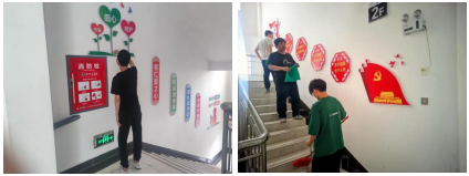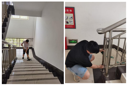 在活动过程中,志愿者们洋溢着笑容,保持着热情,俯下身、低下头,对栏杆上的锈迹精细擦拭,将楼道里的满载脚印的地方拖扫干净,充分地发扬了互帮互助、不怕苦、不怕累的精神。经过两个小时辛勤劳动,清扫任务圆满完成。
