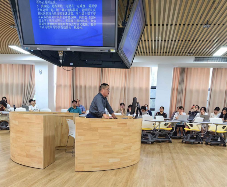 首先,陈和太教授指出OBE是一种教育理念,“两性一度”是一种“金课”标准,基于“以产出为导向、以学生为中心、反向设计”的特点构建与“金课”标准相适应的教学活动模式存在可能性,因此可将两者有机融合。再次,要做到贯彻并实施好“OBE教育理论”与“两性一度”的融合,就要做到产出视角、主体视角、路径视角的转变,从课前的初始到课中的研讨再到课后的拓展应用,每一个教学环节要做到环环相扣,以学生为主体,以教师为主导。最后,陈教授也鼓励教师们要多积累、运用现代化的教学手段来打造属于自己的“金课”,力求在科研申报、课题研究项目当中获得更多的硕果,真正做到教学相长。