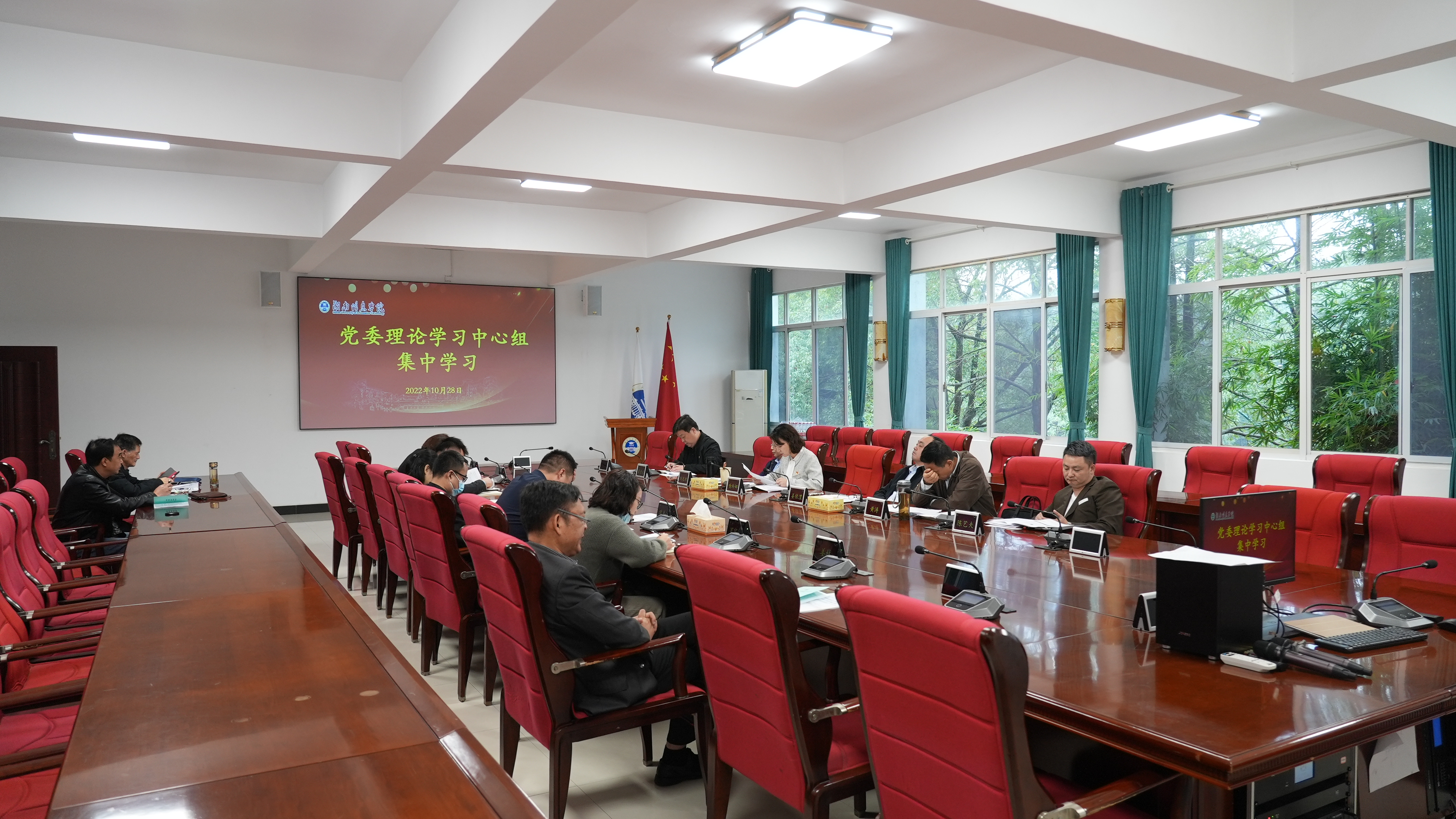 10月28日上午,学校党委理论学习中心组在求实楼二楼会议室组织开展集中学习,学习党的二十大精神和《习近平谈治国理政》第四卷。学校党委书记喻玲娜主持学习会,党委理论学习中心组全体成员及各二级学院党总支书记参加学习。