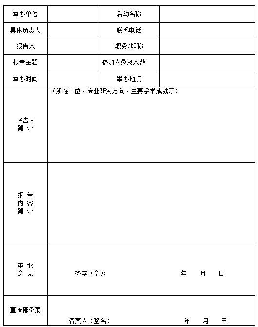 湖南信息学院形势报告会和哲学社会科学报告会、研讨会、讲座、论坛审批表
