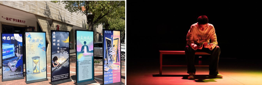活动创新采用“学院+社区分赛场”模式,国际会议中心、双创楼报告厅与社区活动室同步开展赛事。比如聚信社区借用《青蛇传》人物符号寻找属于自己的“岸”,聚智社区以容貌焦虑为镜探讨真正的美……参赛作品紧贴学生生活场景,实现心理健康知识从舞台到日常的转化。活动现场座无虚席,师生互动频繁,多部剧目谢幕后引发热烈讨论。