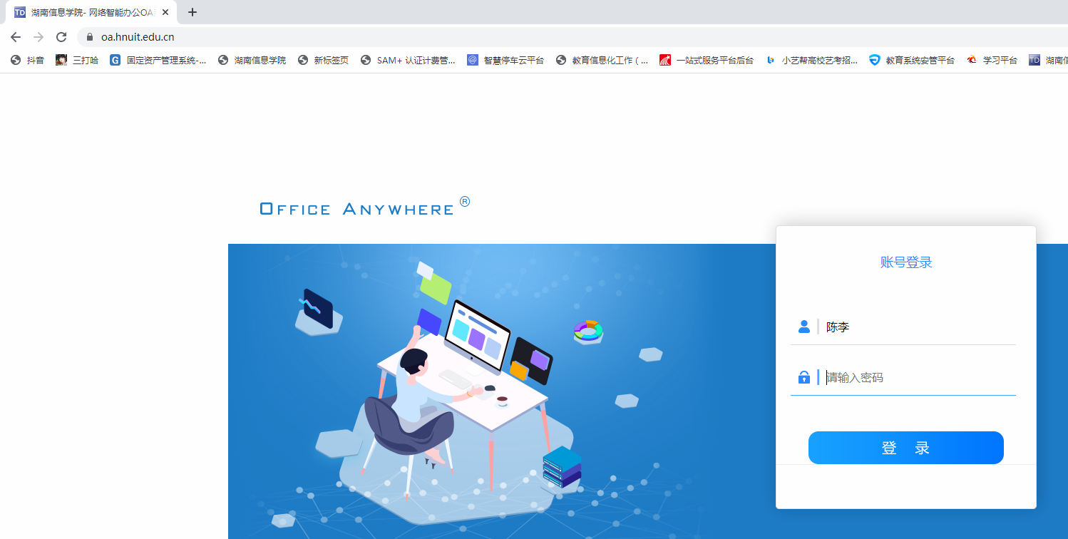 1.通过直接打开电脑浏览器在浏览器地址栏输入OA系统地址:oa.hnuit.edu.cn;