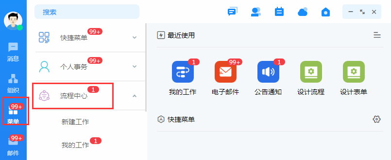 五、最新版本OA系统把原来“工作流程”取消了,把“工作流程”所有的应用都移到了“流程中心”,原的流程可以在“流程中心”使用,其它不变。