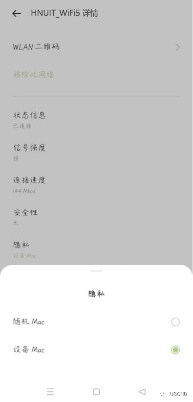 连接HNUIT_WiFi5后,打开设置,如有已下设置,关闭“使用随机硬件地址”,如下图所示: