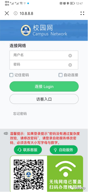 请注意,认证页面收藏无效,只能靠web访问触发重定向才能正常认证。如果是输入是https网站,会提示“证书错误”。请点击忽略或继续浏览,或者输入http的网站即可重定向到认证页面。