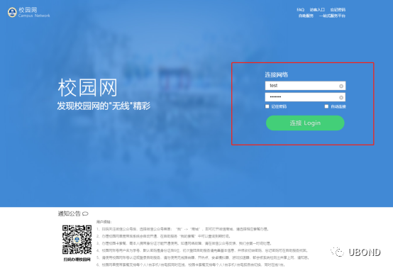 6、当web访问重定向认证页面触发成功后,请输入校园网账号认证。在弹出的认证界面输入学号和密码(大一新生的初始密码为身份证后六位)点击连接登录上网。