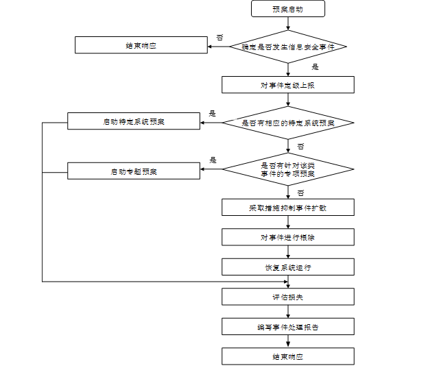 第十二条 在发生信息安全事件时,启动下列应急响应流程,应急响应流程下图所示。