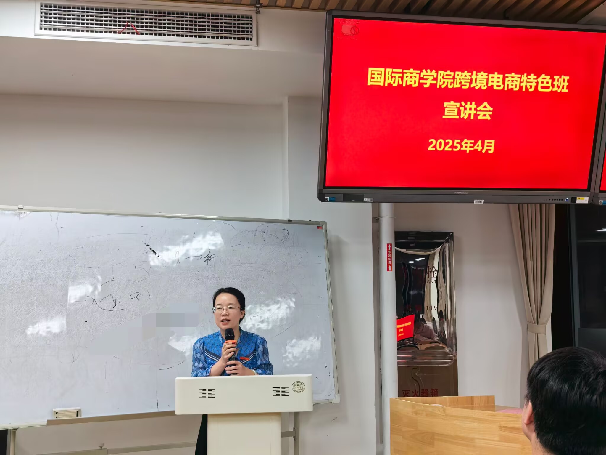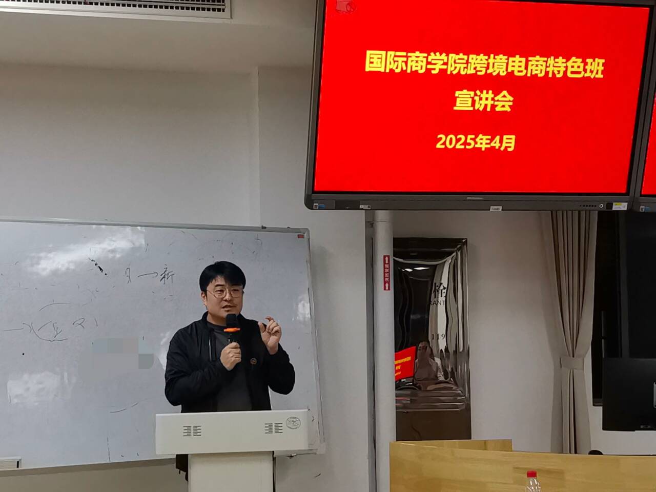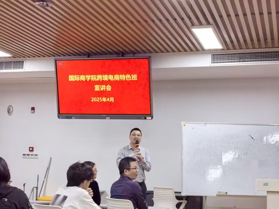 为抢抓数字经济发展机遇,培养高素质跨境电商人才,深化产教融合协同育人,4月28日晚,国际商学院在信息中心楼619报告厅举办首届跨境电商特色班宣讲会。会议由匡益明副院长主持,学院领导、企业代表、2024级国际经济与贸易专业全体学生、辅导员及学业导师等160余人参会。