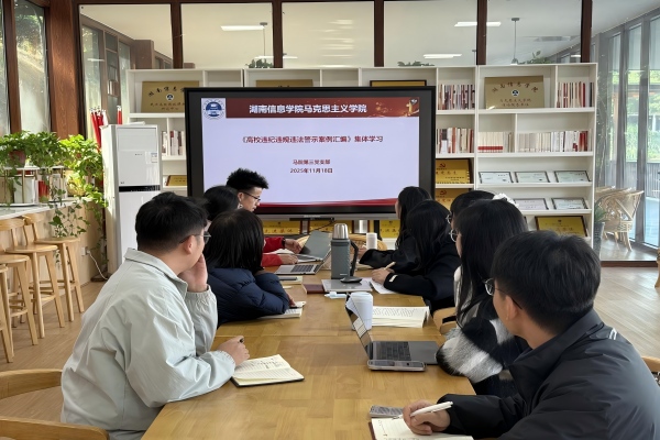 为深入推进师德师风建设,筑牢党员教师纪律思想防线,2025年11月18日,湖南信息学院马克思主义学院第三党支部组织开展《高校违纪违规违法警示案例汇编》《违反教师职业行为十项准则典型案例》集体学习活动。活动由党支部组织委员杨菁菁主持,党支部书记罗达领学,支部全体党员参加。