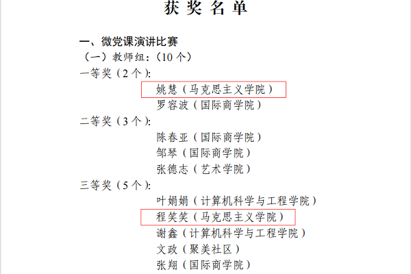 此次比赛是我校党委工作部为营造迎接和学习宣传党的二十大的浓厚氛围,进一步激发师生爱党、爱国、爱社会主义的热情,充分展示我校师生昂扬向上、奋发进取、团结拼搏的精神风貌而开展的系列重要活动之一,学院上下高度重视,派出多位年轻有为、政治立场坚定的青年教师参赛并喜获佳绩。