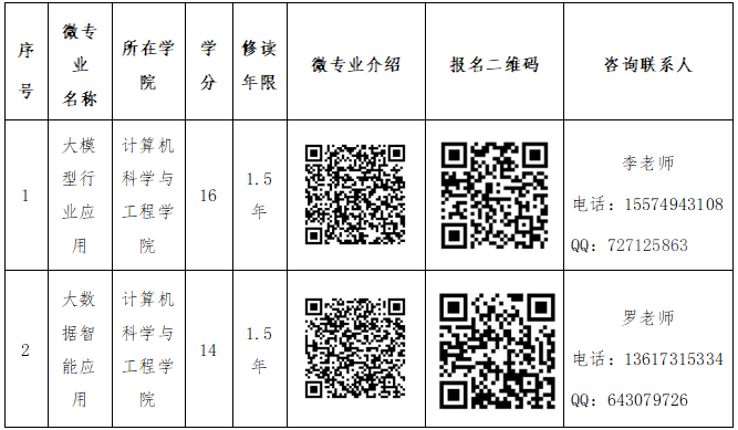 2.报名方式:通过各微专业指定报名方式报名。