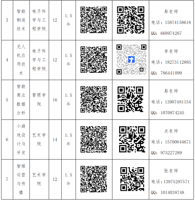本期开设7个微专业,收费标准统一为70元/学分。请扫描下方对应二维码,详细了解各专业介绍并进行报名。