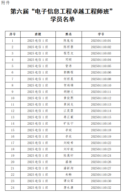 附件:第六届“电子信息工程卓越工程师班”学员名单