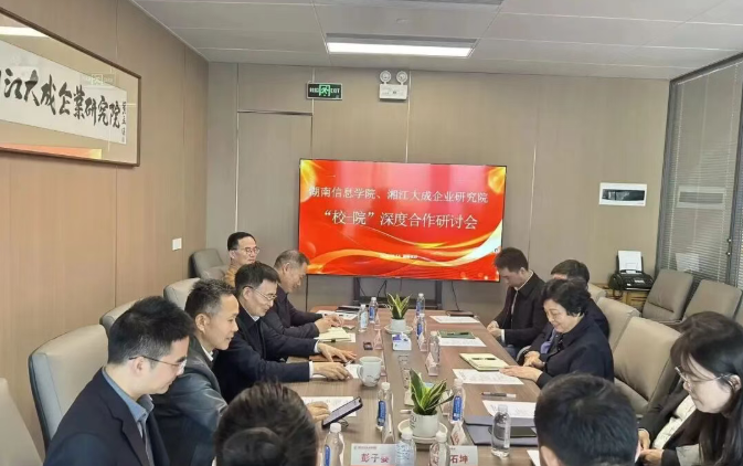 为探索产教深度融合、校院紧密合作机制,搭建资源共享、优势互补的“校-院”科创共同体,近日,我校与湘江大成企业研究院深度合作研讨会在研究院顺利召开。学校副校长李定珍携校长助理、校产教融合中心主任姜佐军,电子科学与工程学院院长余波及院系团队出席,研究院特约研究员彭继球,研究院书记廖双寅,理事、科德信息集团董事长杨春生,理事、睿图智能董事长周博文,俄罗斯湖南总商会暨同乡会执行秘书长彭子婴共同参会,各方围绕深化合作、协同发展展开深入交流。